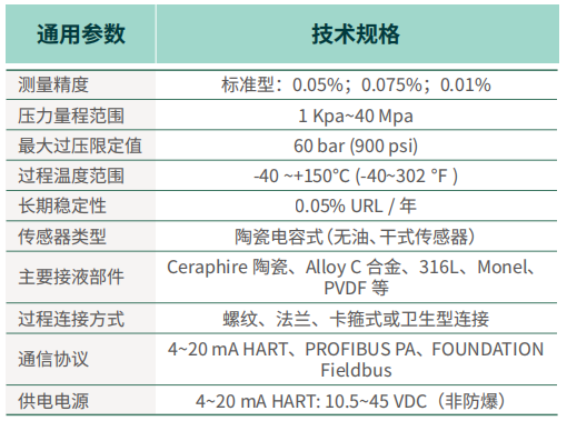 The FPC200 intelligent high-precision pressure transmitter, employing an oil-free ceramic sensor, is primarily used for measuring the pressure, level, volume, and mass of gases and liquids. It is particularly suitable for process industries and the hygiene sector. Its core ceramic measuring element enables it to exhibit high stability and safety even under demanding operating conditions.