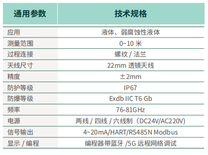 The product's maximum range can reach 120m, with a blind zone of 8cm. Due to its higher operating frequency and shorter wavelength, it is particularly suitable for solid-state applications. Its lens-based electromagnetic wave emission and reception method offers unique advantages in high-dust and harsh temperature environments (+200℃). The instrument offers flange or threaded mounting options for easy and convenient installation.